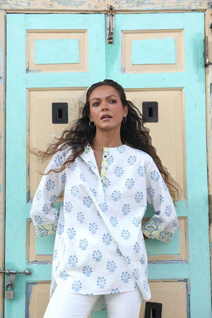 Our newest collection is 100% organic cotton hand screen-printed by artisans in India.